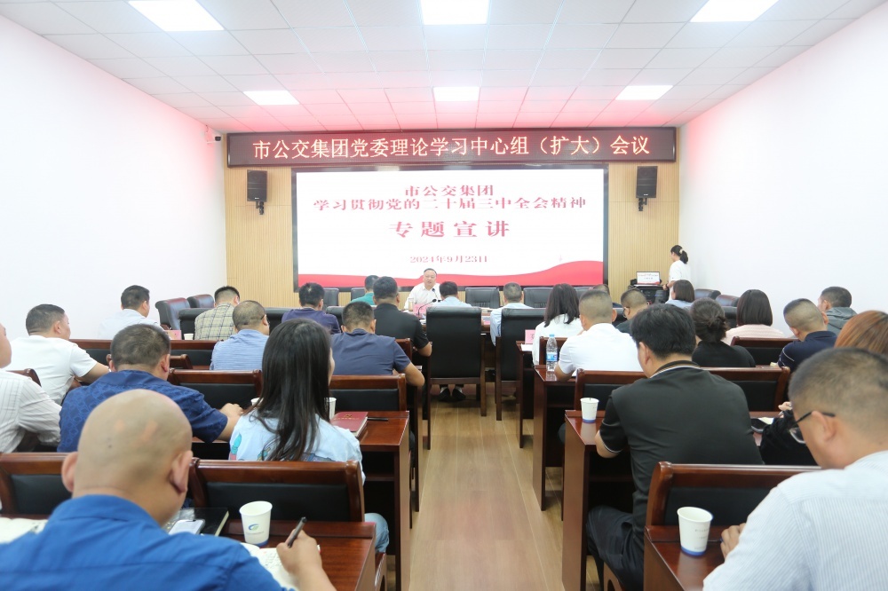 9月23日,在市公交集團(tuán)學(xué)習(xí)貫徹黨的二十屆三中全會(huì)精神宣講報(bào)告會(huì)上,集團(tuán)黨委書記、董事長卞軍虎以深化國資國企改革為切入點(diǎn)作宣講報(bào)告。集團(tuán)各黨支部書記、黨員干部等44人參加會(huì)議。