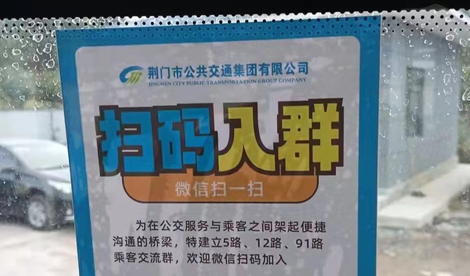 “為在公交服務(wù)與乘客之間架起便捷溝通的橋梁,特建立5路、12路、91路乘客交流群,歡迎微信掃碼加入?!苯?,有乘客在乘坐12路公交車時(shí)新奇地發(fā)現(xiàn),車窗上貼出了一個(gè)名為“掃碼入群”的微信二維碼(如圖)。