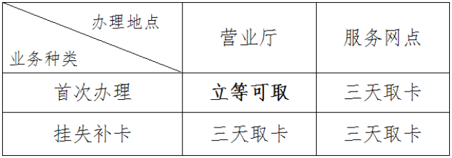 (2)非實(shí)名卡:任一服務(wù)網(wǎng)點(diǎn)直接辦理,無需證件,遺失不補(bǔ)。