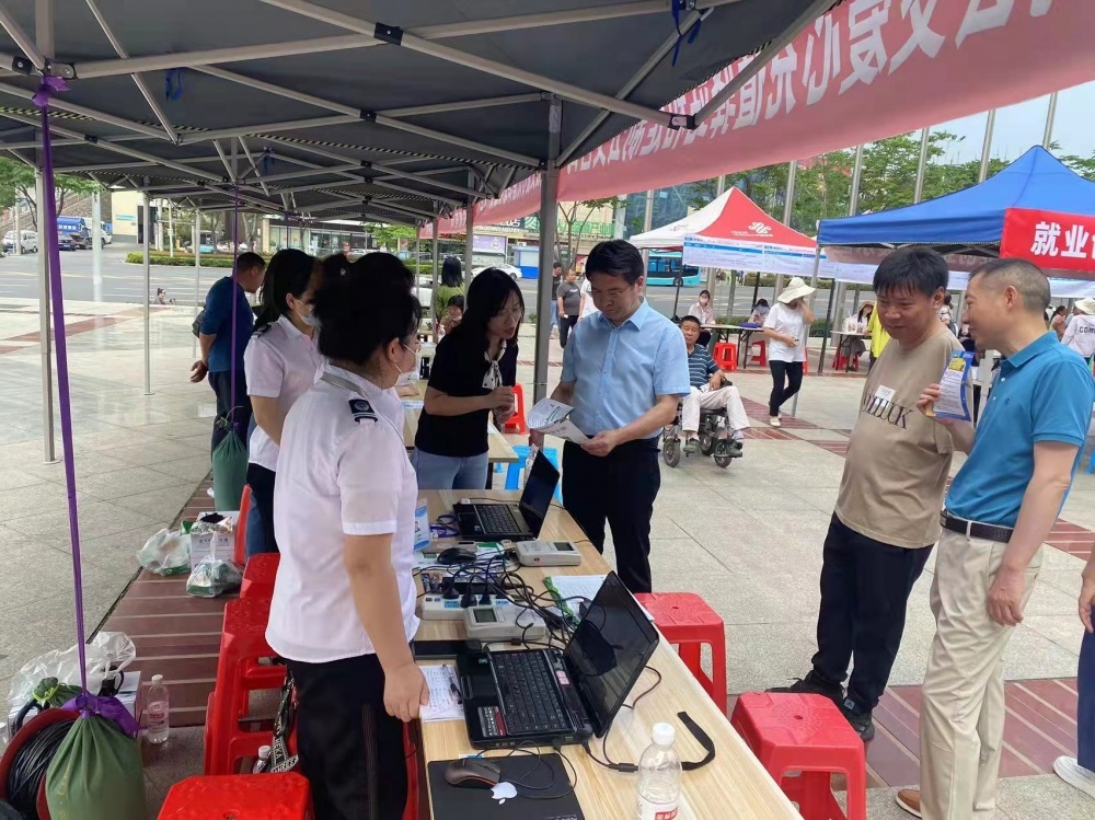 圖為工作人員現(xiàn)場發(fā)放服務(wù)指南,為殘疾人士詳細(xì)講解愛心卡的辦理流程和注意事項(xiàng),并聽取他們的意見和建議。