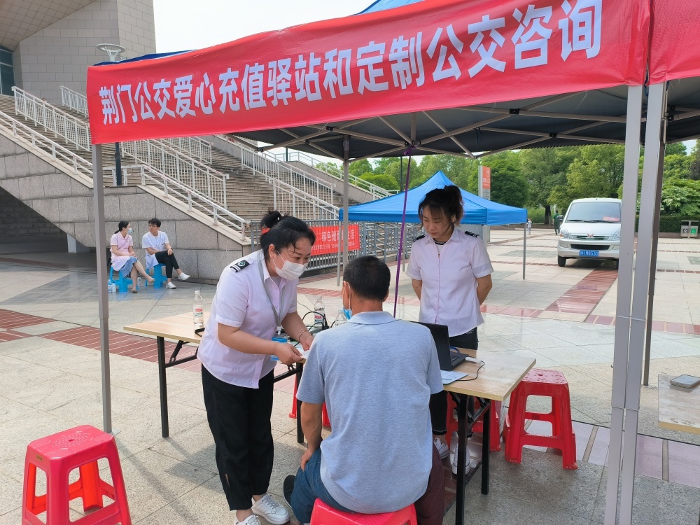5月20日,荊門市殘疾人聯(lián)合會(huì)在荊門體育文化中心舉辦殘疾人專場招聘會(huì)。市公交集團(tuán)營業(yè)中心組織工作人員在活動(dòng)現(xiàn)場設(shè)立臨時(shí)愛心充值驛站,為前來參加活動(dòng)的殘疾朋友和其它市民朋友分別提供愛心卡咨詢、信息登記、年審、掛失和公交IC卡新辦、充值、年審、掛失等服務(wù),同時(shí),積極宣傳推廣荊門公交微信公眾號,方便市民查詢公交咨詢,體驗(yàn)實(shí)時(shí)公交,讓市民告別等車焦慮,從容出行。