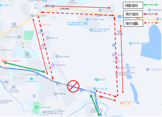 全封閉施工期間(2023年6月底至2023年8月底)往返繞行五一路、月亮湖路、江山路。